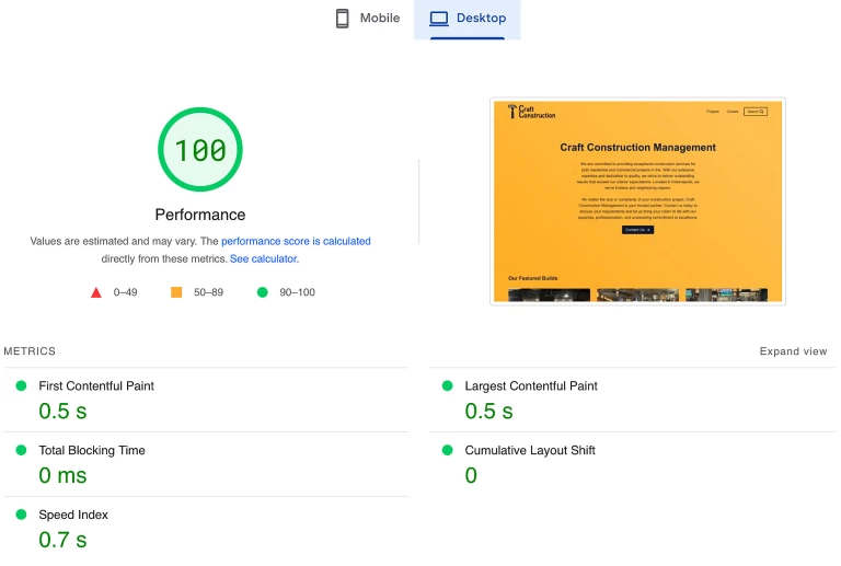This site consistently scores top marks in SEO and performance categories, as verified by Lighthouse testing. We achieved this by optimizing key aspects of the site, including fast load times, responsive design, and clean code. To further enhance search visibility, we integrated JSON-LD structured data and well-optimized Open Graph (og:) meta tags, ensuring that search engines and social platforms display rich, relevant snippets of the site. These SEO elements are seamlessly managed using the SEOmatic plugin within Craft CMS, which automates and optimizes metadata, giving the site a competitive edge in search rankings while maintaining excellent performance.