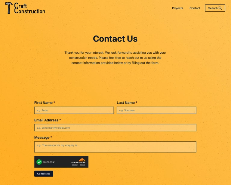Our contact form is designed with custom-branded email templates, ensuring that all communications sent through the site maintain a consistent and professional appearance. These email templates, crafted with the brand's colors, fonts, and logos, create a cohesive experience for both the business and its users. Additionally, to provide an extra layer of security, the form is protected by Cloudflare's Turnstile CAPTCHA, which effectively filters out spam and bot traffic without disrupting the user experience. This combination of branded communication and enhanced security ensures smooth, secure, and professional interactions with site visitors.
